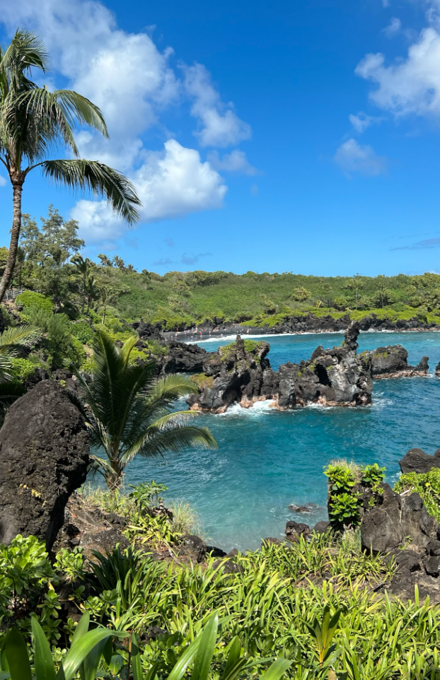 Over time, bits of lava rock have fallen from the top and sides of the Cathedrals allowing the bright Hawaiian sun to shine through, illuminating the caverns and highlighting rainbow colors in the blue water. The bright, well-lit chambers are large, ~30 feet tall, and have several entry and exit points. I’m someone who gets a little claustrophobic, but it was totally fine for me and felt nothing like being in a cave!
